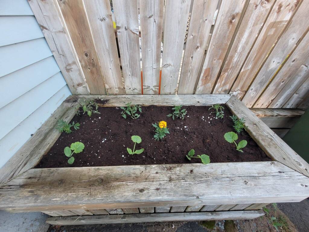 Jenna and I planted dill, chives and marigolds all among the garden beds to help deter potential pests. And it helps that the dill and chives make for a delicious herb as well!